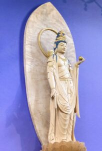 こころみ堂のロゴは、明星観世音菩薩を取り入れました。左手に金星を持ち、その光で人々を暗闇から明るい世界へと導いてくださる仏様です